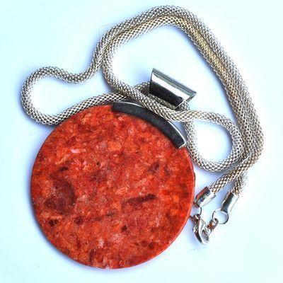 PEN-057 - Superbe PENDENTIF en CORAIL éponge rond de 50 mm avec Chaîne 4 mm - 135 carats - 27 gr