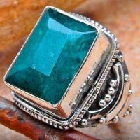 BAG-001 - Belle BAGUE Chevalière T55 en argent 925 et EMERAUDE du Cachemire facettée 12 x 16 mm - 45 carats - 9 gr