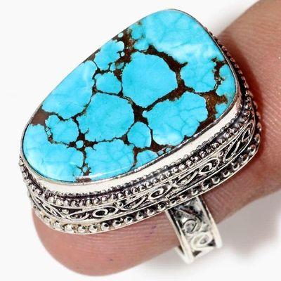 BAG-007 - Belle BAGUE Chevalière T55 en argent 925 et TURQUOISE bleue polie 15 x 22 mm - 55 carats - 11 gr