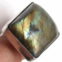 BAG-061 - Jolie BAGUE Chevalière T51 en argent 925 et LABRADORITE polie rectangle 20 x 25 mm - 70 carats - 14 gr
