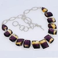 COL-013 - Magnifique COLLIER parure en argent 925 et 12 AMETRINES taillées 15 x 20 mm - 430 carats - 86 gr