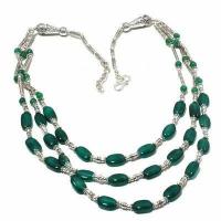 COL-016 - COLLIER PARURE SAUTOIR 3 rangs de perles en EMERAUDE polies ovales 8 x 15 mm -290 carats - 58 gr