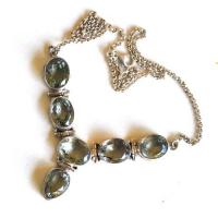 COL-077 - COLLIER 48 cm en argent 925 et 6 cabochons en TOPAZE Blanche polie ovale de 10 x 15 mm - 170 carats - 34 gr