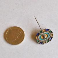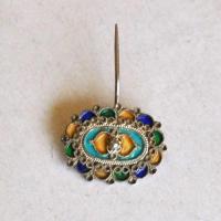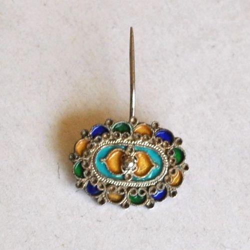 BBY-006 - Jolie petite BROCHE EPINGLE ancienne Berbère Kabyle BENI YENNI 10 cm Motif central 40 mm en argent émaillé bleu / vert / jaune - 10 carats 2 gr
