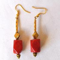 BJB-018 - Longues BOUCLES PENDANTS D'OREILLES 70 mm ethniques berbères, kabyles en Aventurine et bronze doré - 75 carats 15 gr