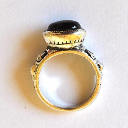 BJE-004 - Belle bague Chevalière Egyptienne T 55 cabochon en ONYX noir poli ovale de 8 x 10 mm et Argent 925 - 45 carats - 9 gr