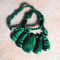 BJE-062 - COLLIER avec 5 PENDENTIFS Egyptiens 30 x 50 mm en MALACHITE Verte et rang perles rondes 6 mm - 285 carats - 57 gr