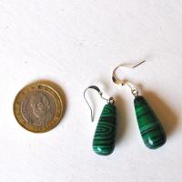 BJE-073 - longue Paire de BOUCLES d'oreilles Egyptiennes 70 mm Pendants en poire 10 x 20 mm en MALACHITE verte monture en Argent 15 mm - 35 carats - 7 gr
