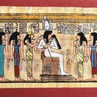 PAPY-021 - Enluminure PAPYRUS égyptien - Offrandes de 5 femmes égyptiennes au dieu OSIRIS - Fabrication artisanale traditionnelle - 110 x 180 mm