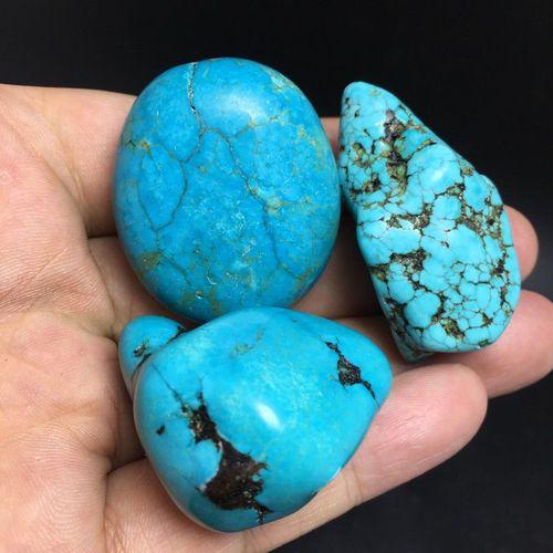 PTQ-022 - Lot 3 belles TURQUOISES bleues - pierres naturelles brutes polies 30/40 mm - 575 carats 115 gr