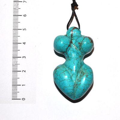 SCU-024 - VENUS préhistorique sculptée en turquoise polie - 55 x 30 x 20 mm cordelette coton ciré noir - 36 gr