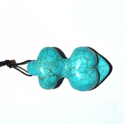 SCU-028 - VENUS préhistorique sculptée en turquoise polie - 55 x 30 x 20 mm cordelette coton ciré noir - 35 gr