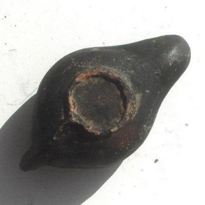 LPH-001 - Ancienne Lampe-à-huile-antique-grecque-80gr-100x55x35 mm en terre cuite noire