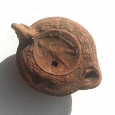 LPH-034 - Repro LAMPE à HUILE romaine 1er siècle en terre cuite 132gr - 130x85x50 mm