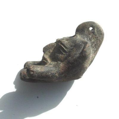 LPH-001 - Ancienne Lampe-à-huile-antique-grecque-80gr-100x55x35 mm en terre cuite noire